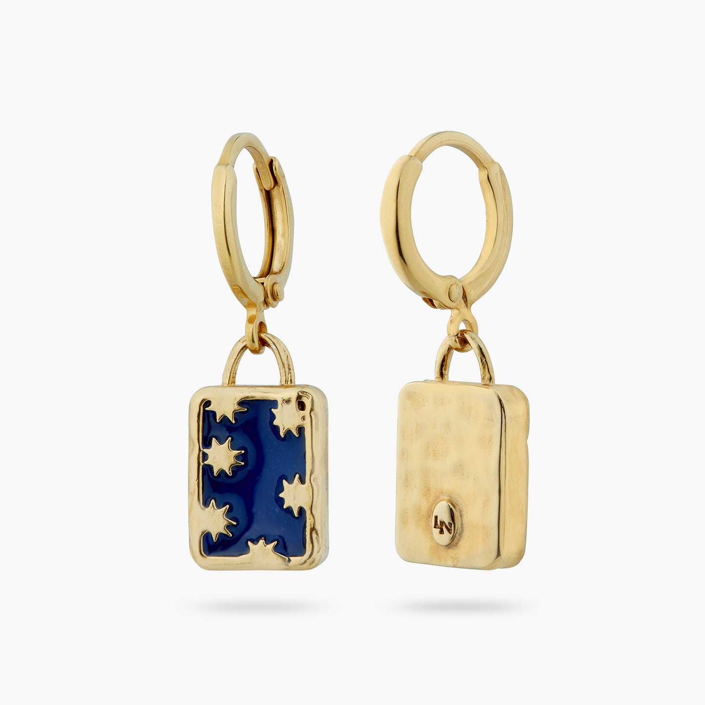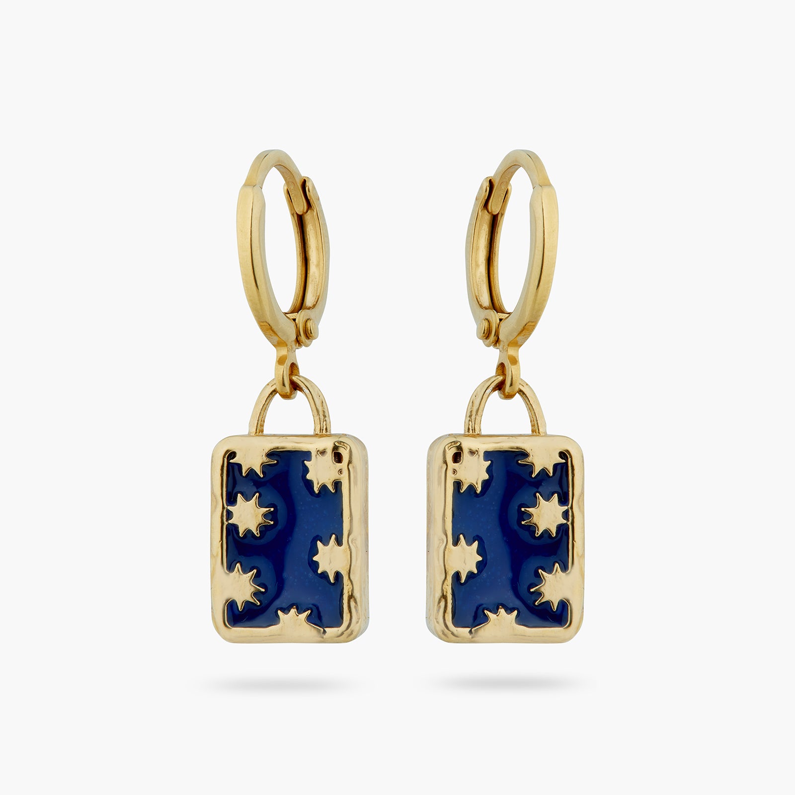 Post earrings, lion of Saint Mark inspired golden stars with a blue background. This collection takes you on a journey through Venice and its symbols, such as the lion of Saint Mark, gondolas and harlequins.