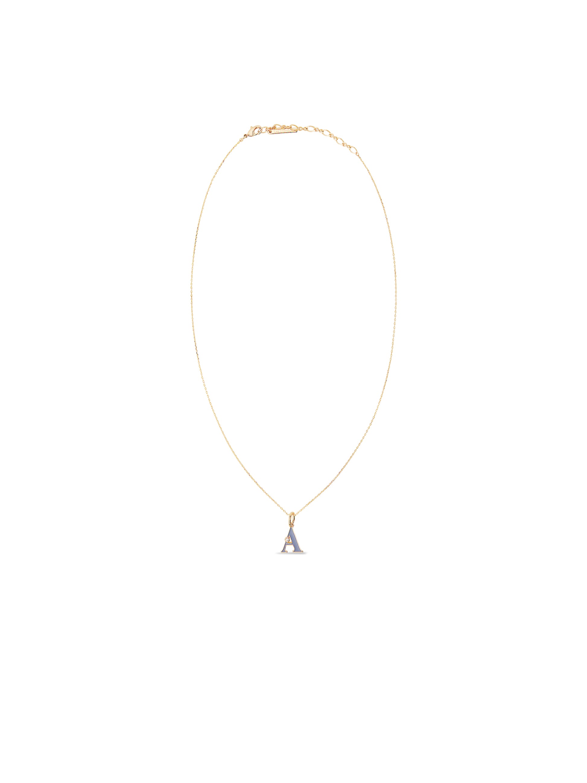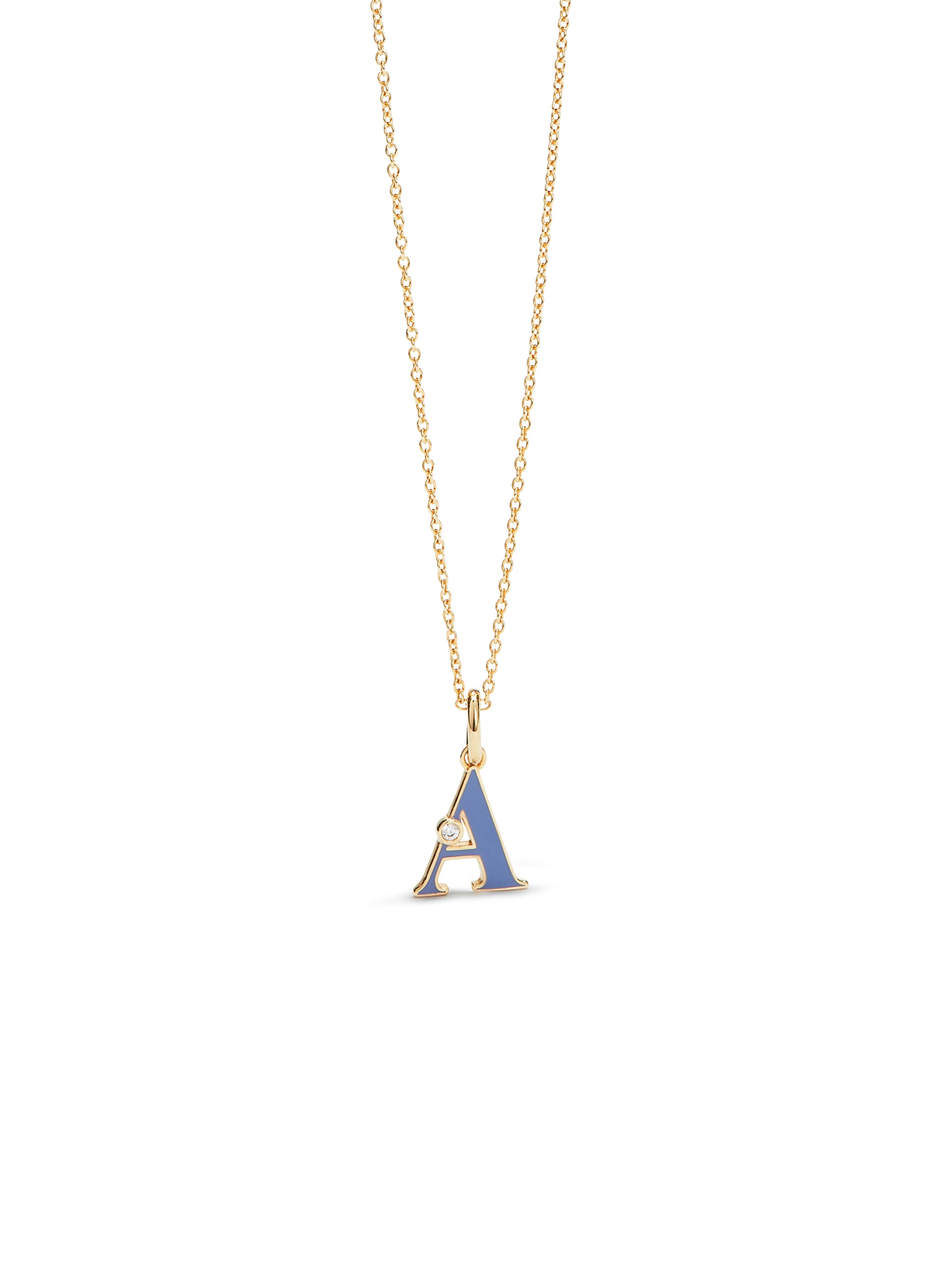 On this pendant necklace, the enamelled letter A appears, coloured in sky blue and adorned with cubic zirconia. Les Néréides reinvents the alphabet. This time, after the Floral Letters and Extraordinary Alphabet collections, the choice was made for an elegant and timeless typography. The enamelled letters are available in four complementary colours (off-white, pastel pink, cornflower blue and burgundy red) and embellished with cubic zirconia.