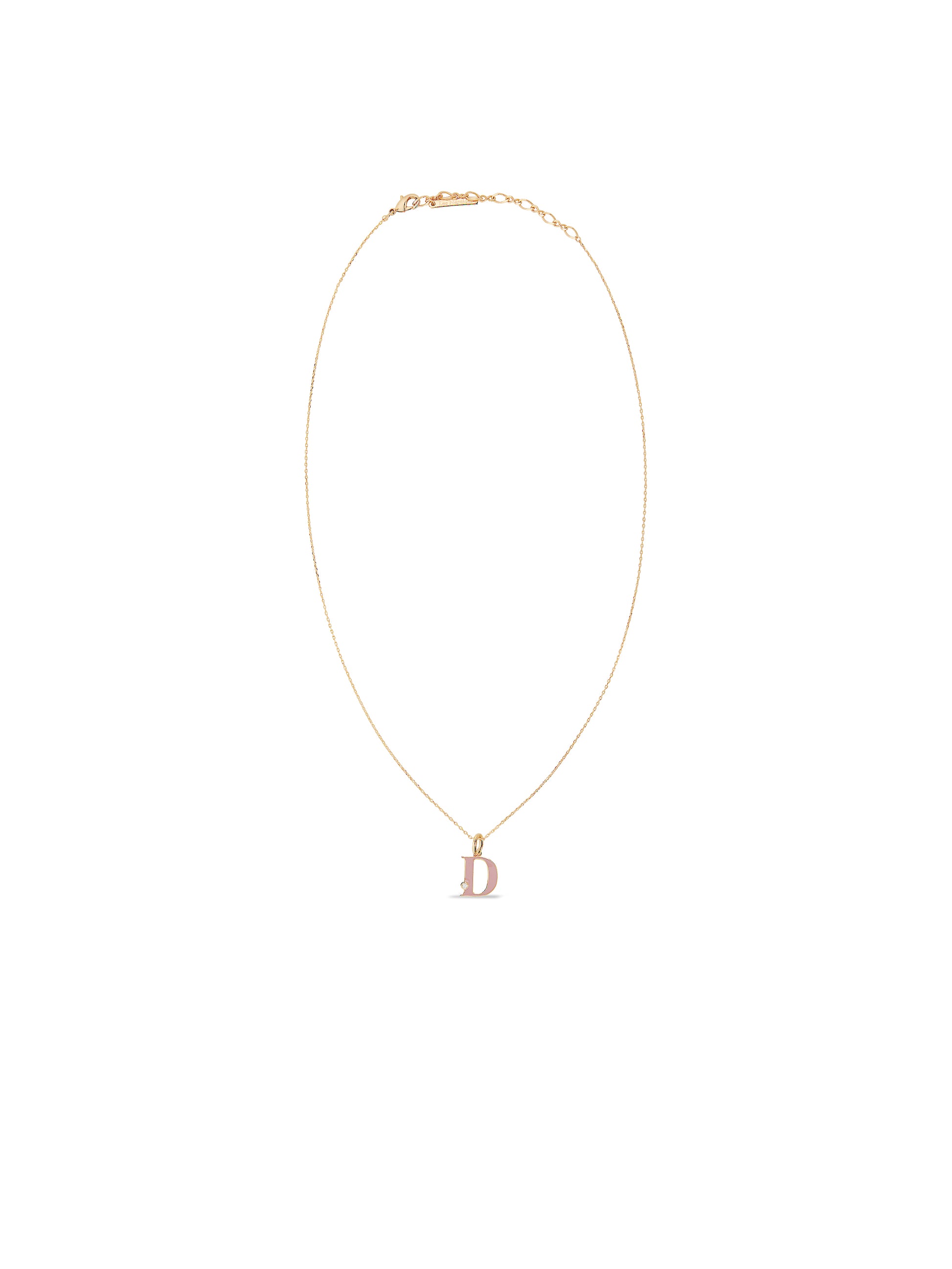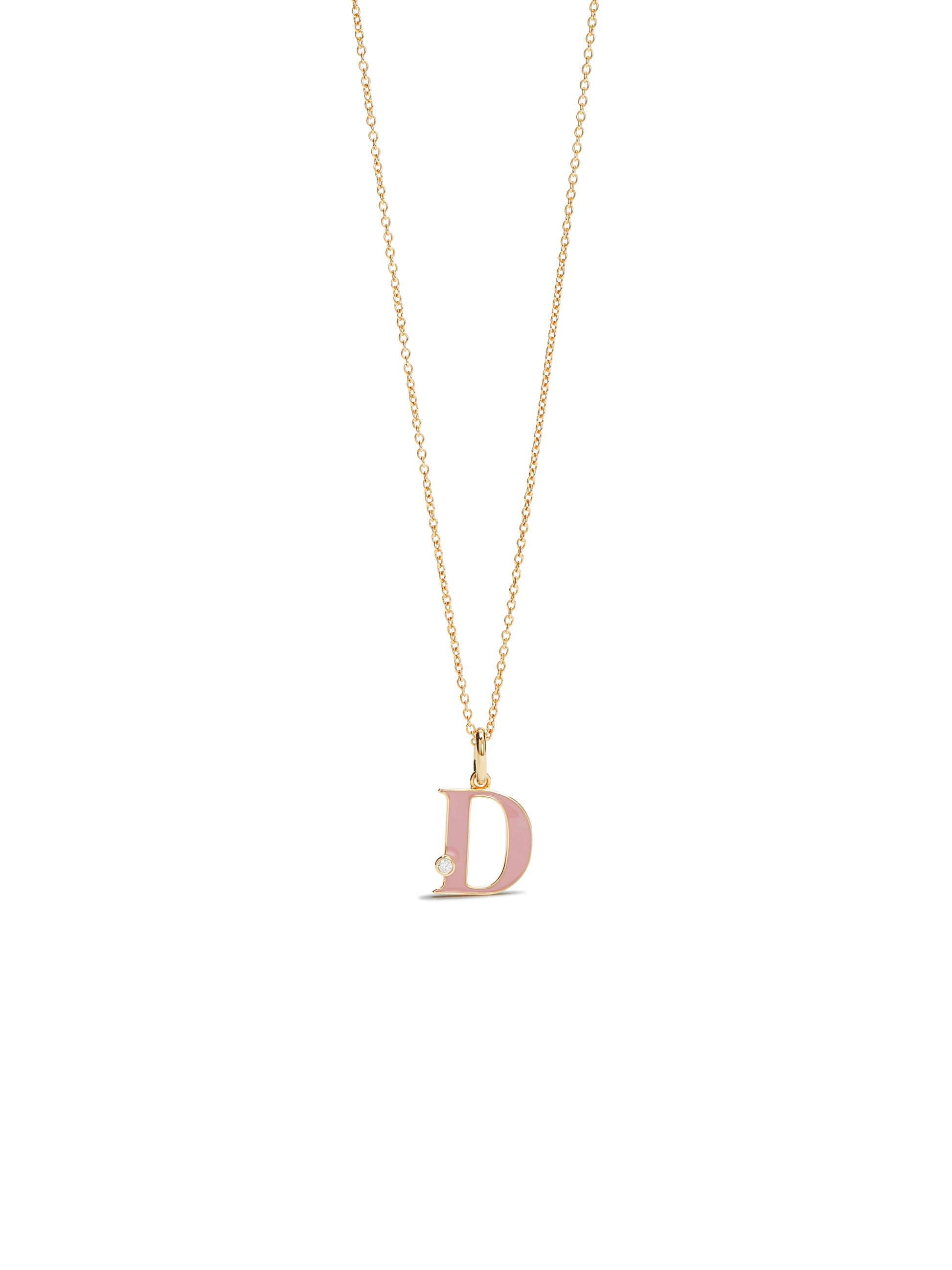 On this pendant necklace, the enamelled letter D appears, coloured a pale pink and adorned with cubic zirconia. Les Néréides reinvents the alphabet. This time, after the Floral Letters and Extraordinary Alphabet collections, the choice was made for an elegant and timeless typography. The enamelled letters are available in four complementary colours (off-white, pastel pink, cornflower blue and burgundy red) and embellished with cubic zirconia.