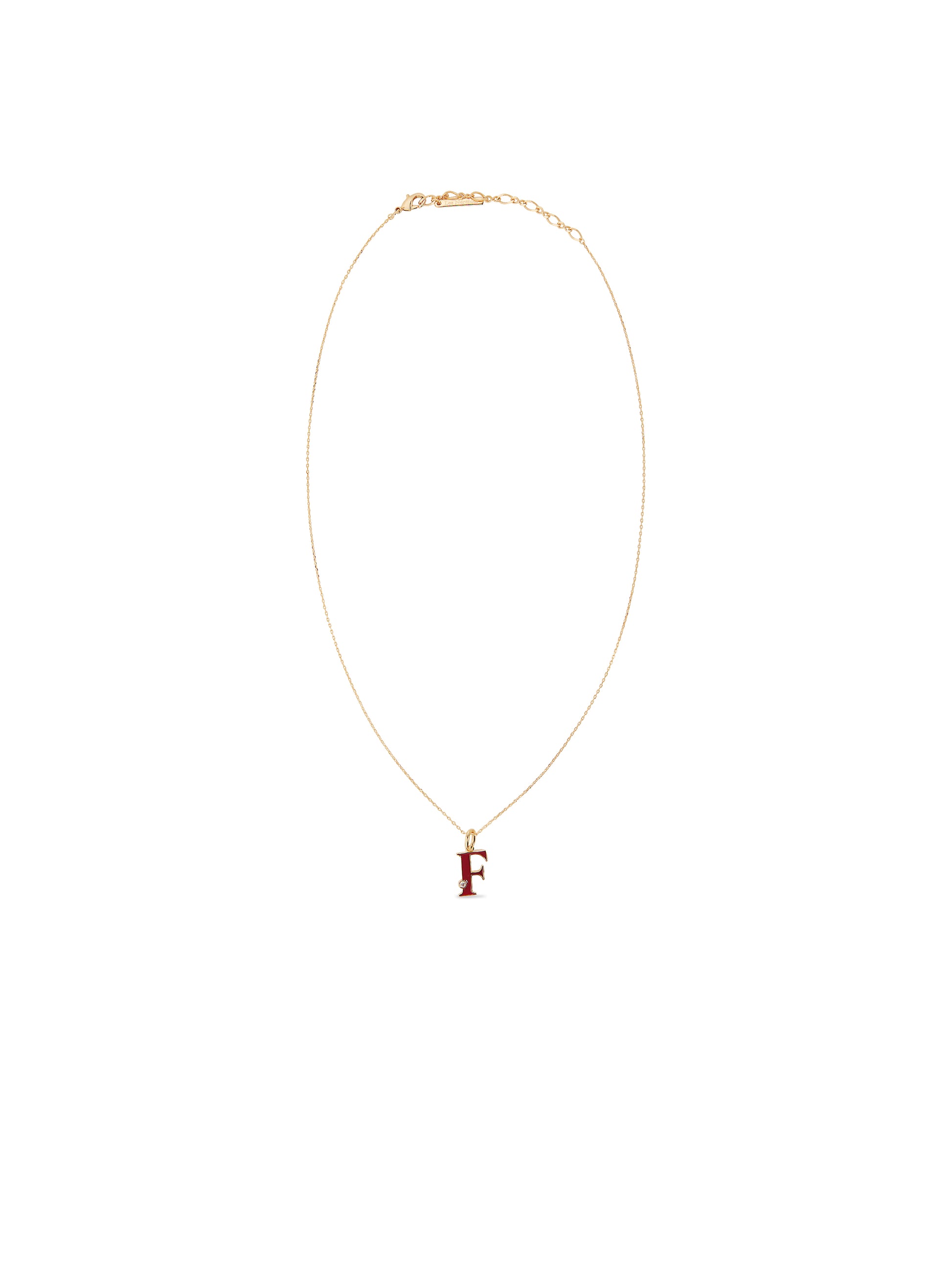 On this pendant necklace, the enamelled letter F appears, coloured burgundy red and adorned with cubic zirconia. Les Néréides reinvents the alphabet. This time, after the Floral Letters and Extraordinary Alphabet collections, the choice was made for an elegant and timeless typography. The enamelled letters are available in four complementary colours (off-white, pastel pink, cornflower blue and burgundy red) and embellished with cubic zirconia.