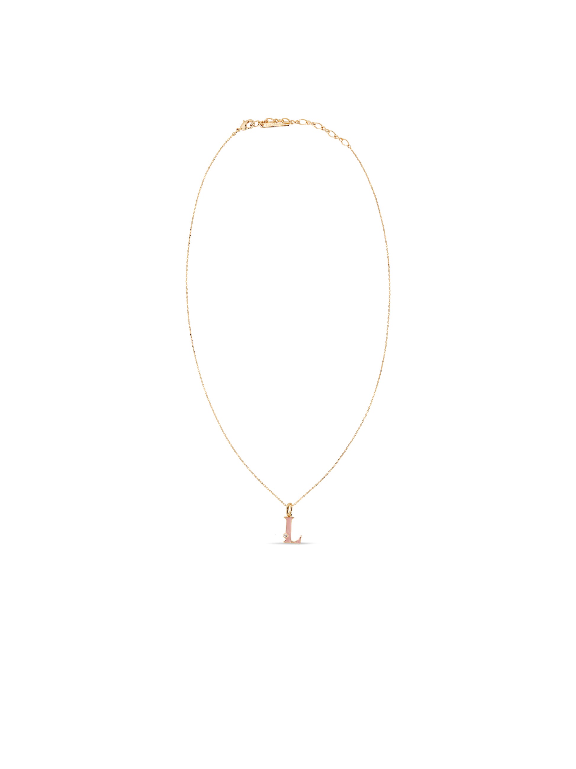 On this pendant necklace, the enamelled letter L appears, coloured a pale pink and adorned with cubic zirconia. Les Néréides reinvents the alphabet. This time, after the Floral Letters and Extraordinary Alphabet collections, the choice was made for an elegant and timeless typography. The enamelled letters are available in four complementary colours (off-white, pastel pink, cornflower blue and burgundy red) and embellished with cubic zirconia.