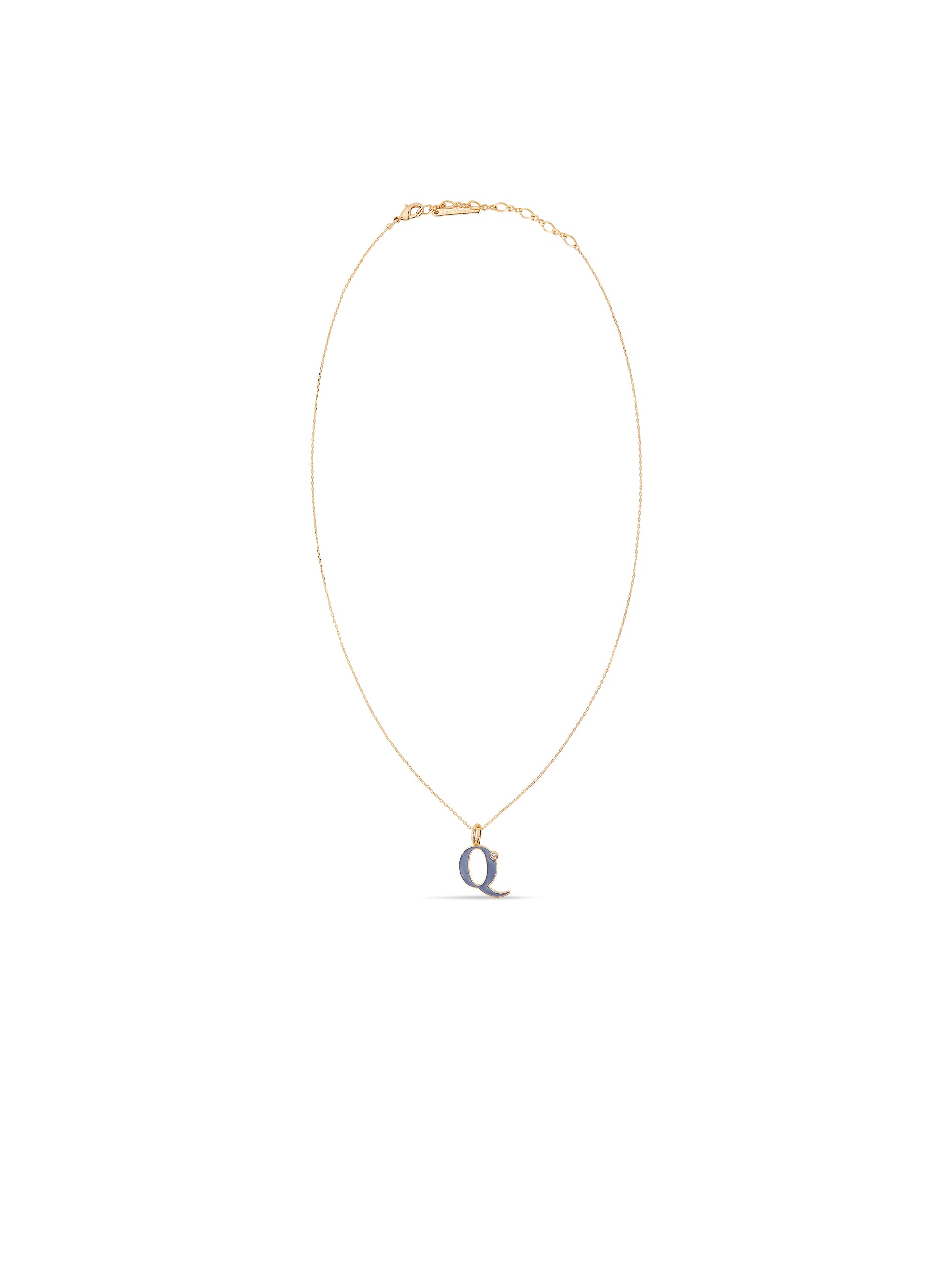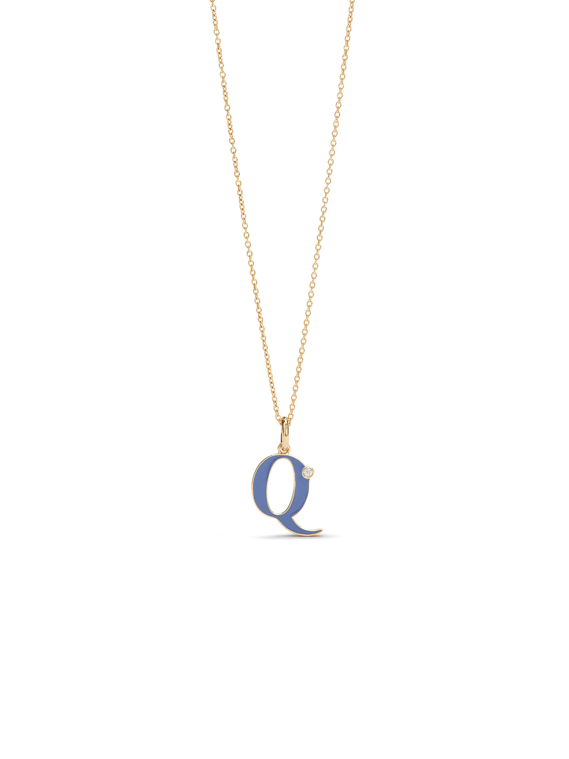 On this pendant necklace, the enamelled letter Q appears, coloured sky blue and adorned with cubic zirconia. Les Néréides reinvents the alphabet. This time, after the Floral Letters and Extraordinary Alphabet collections, the choice was made for an elegant and timeless typography. The enamelled letters are available in four complementary colours (off-white, pastel pink, cornflower blue and burgundy red) and embellished with cubic zirconia.