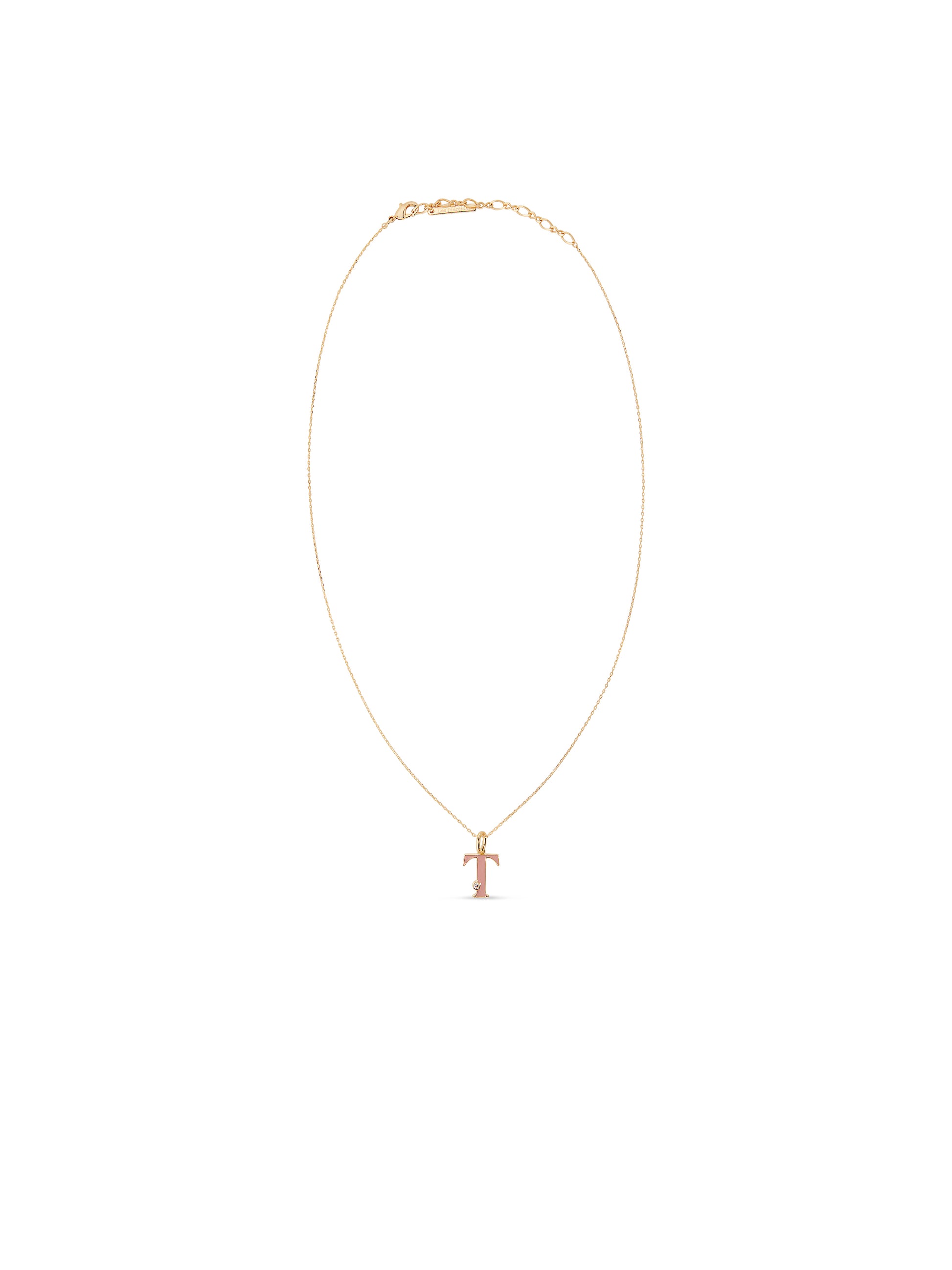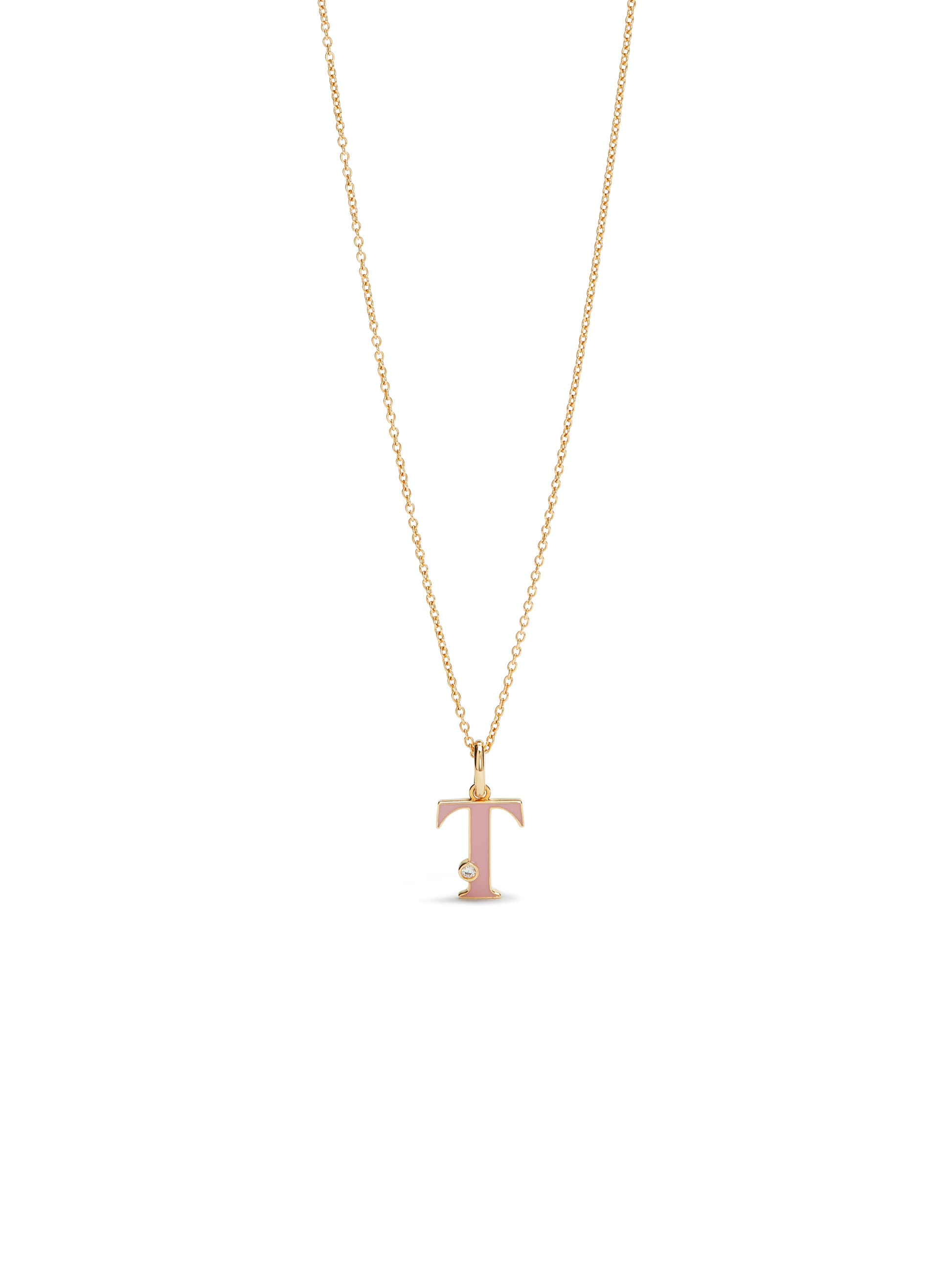 On this pendant necklace, the enamelled letter T appears, coloured a pale pink and adorned with cubic zirconia. Les Néréides reinvents the alphabet. This time, after the Floral Letters and Extraordinary Alphabet collections, the choice was made for an elegant and timeless typography. The enamelled letters are available in four complementary colours (off-white, pastel pink, cornflower blue and burgundy red) and embellished with cubic zirconia.