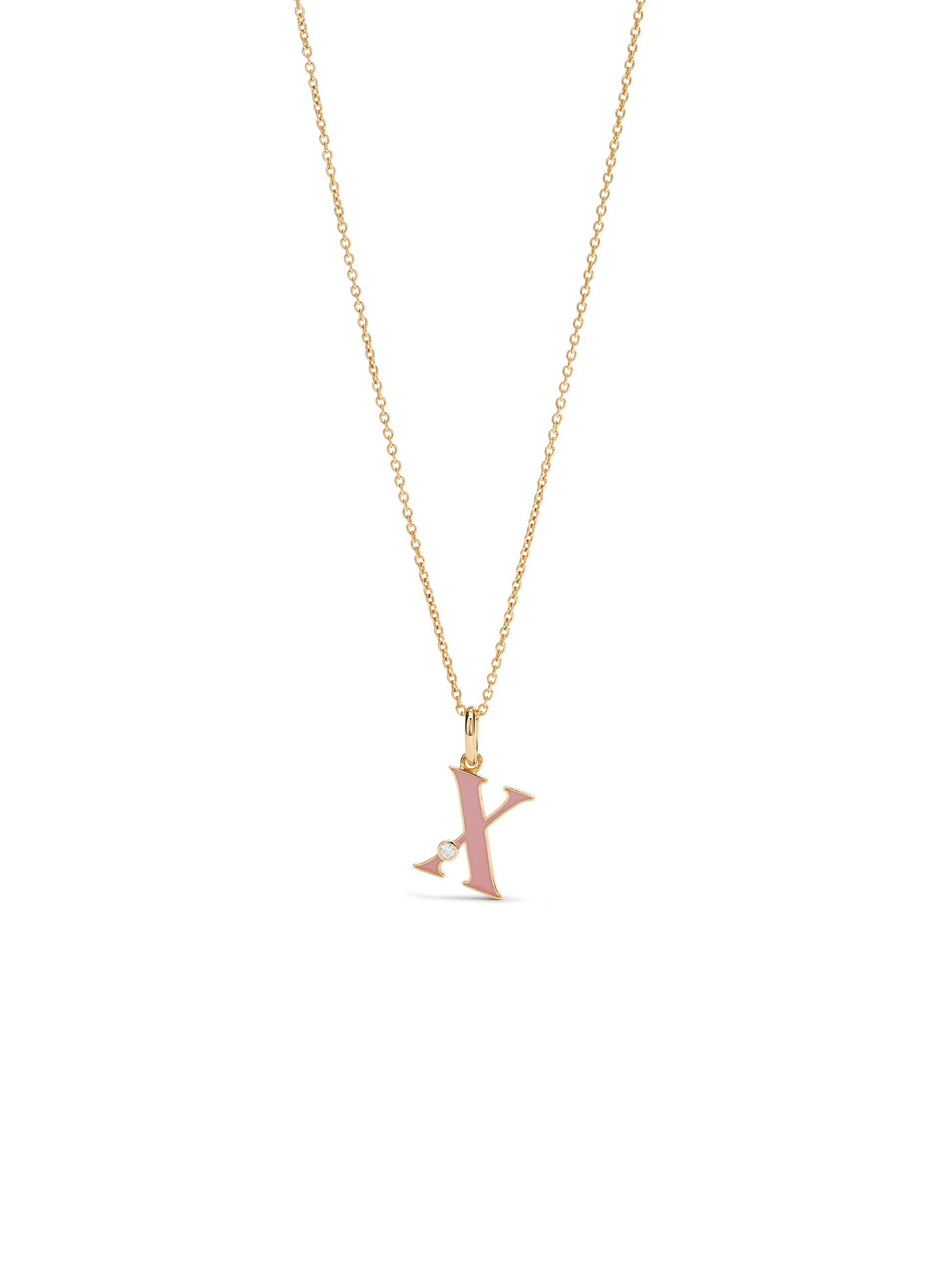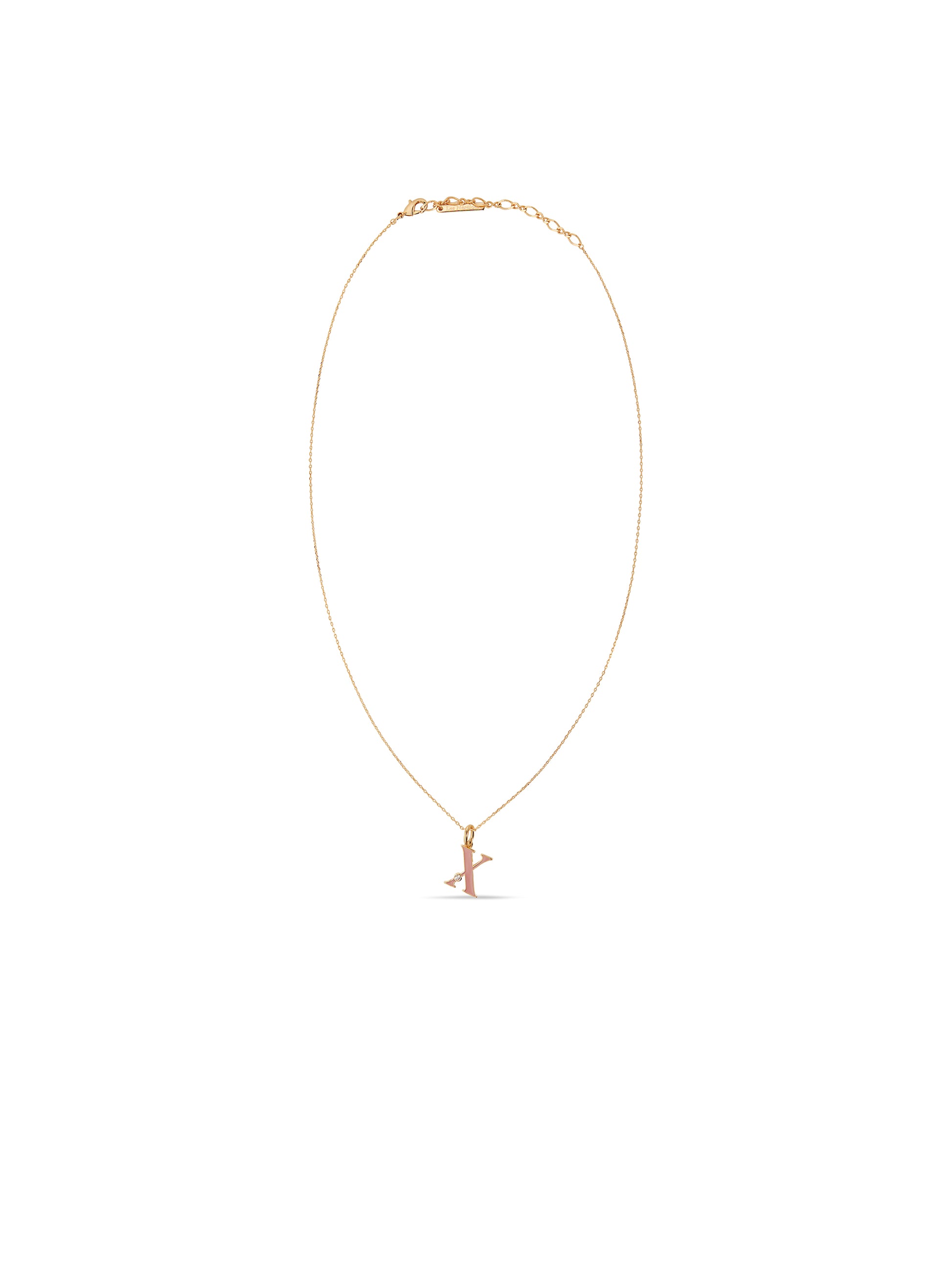 On this pendant necklace, the enamelled letter X appears, coloured a pale pink and adorned with cubic zirconia. Les Néréides reinvents the alphabet. This time, after the Floral Letters and Extraordinary Alphabet collections, the choice was made for an elegant and timeless typography. The enamelled letters are available in four complementary colours (off-white, pastel pink, cornflower blue and burgundy red) and embellished with cubic zirconia.