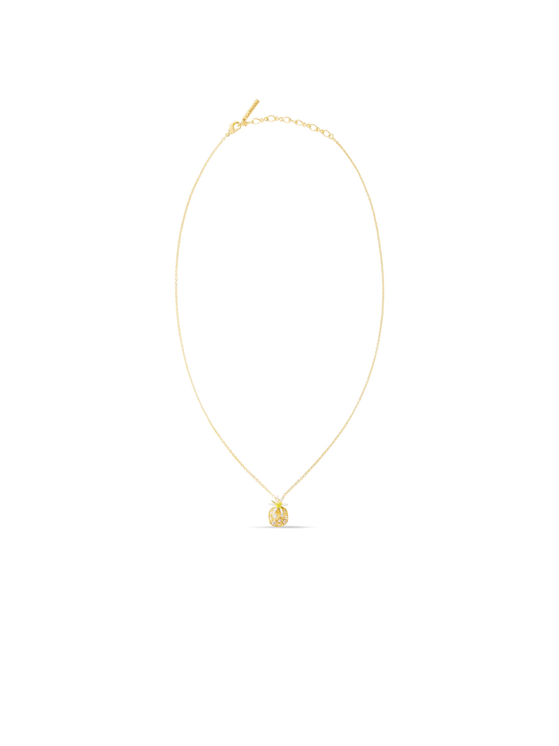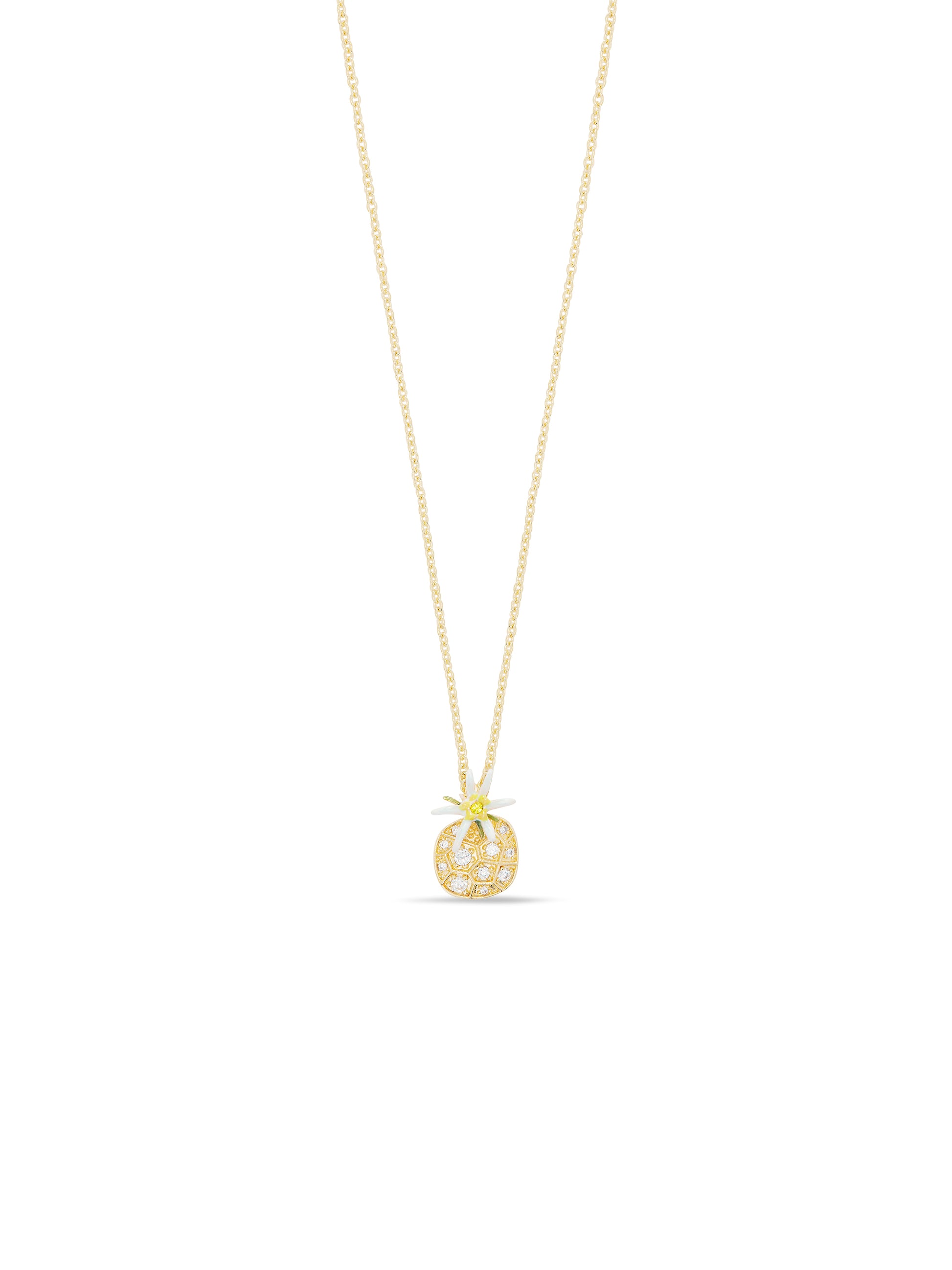 Pendant necklace featuring an edelweiss flower with white, yellow and green petals. This flower comes with cubic zirconia, set in the shape of a beehive. This season, Les Néréides Loves Animals is celebrating winter. In the heart of the mountains, a family of arctic foxes blends into the landscape. 15% of the profits from this collection are donated to the Les Néréides Loves Animals foundation.
