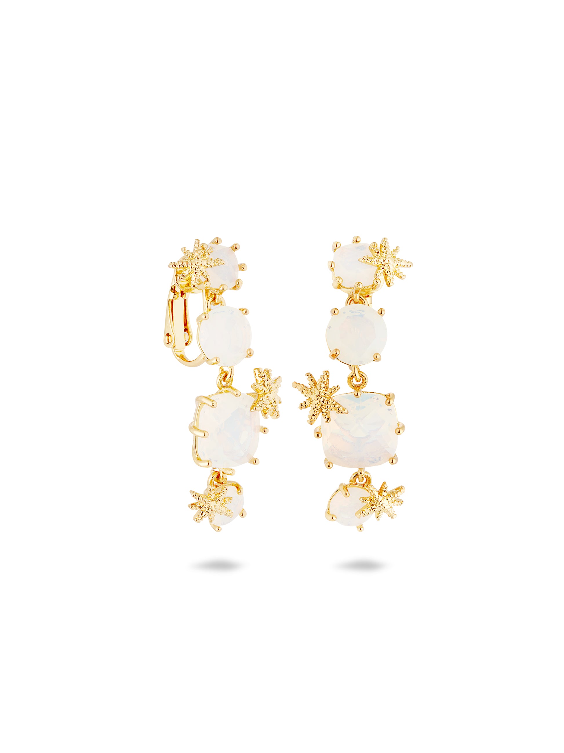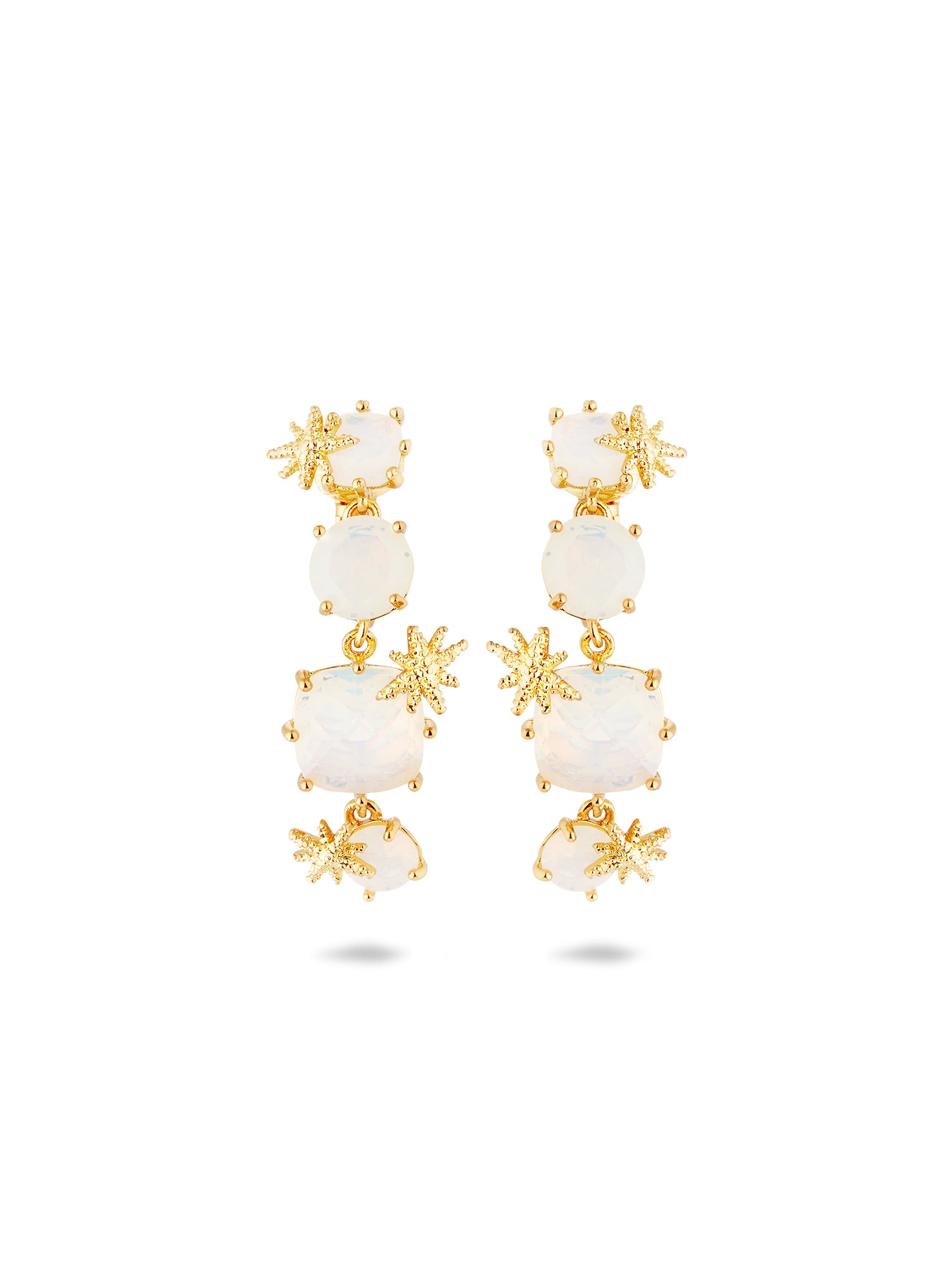 Diamantine Earrings With Four Opalescent White Stones And Fine Stars