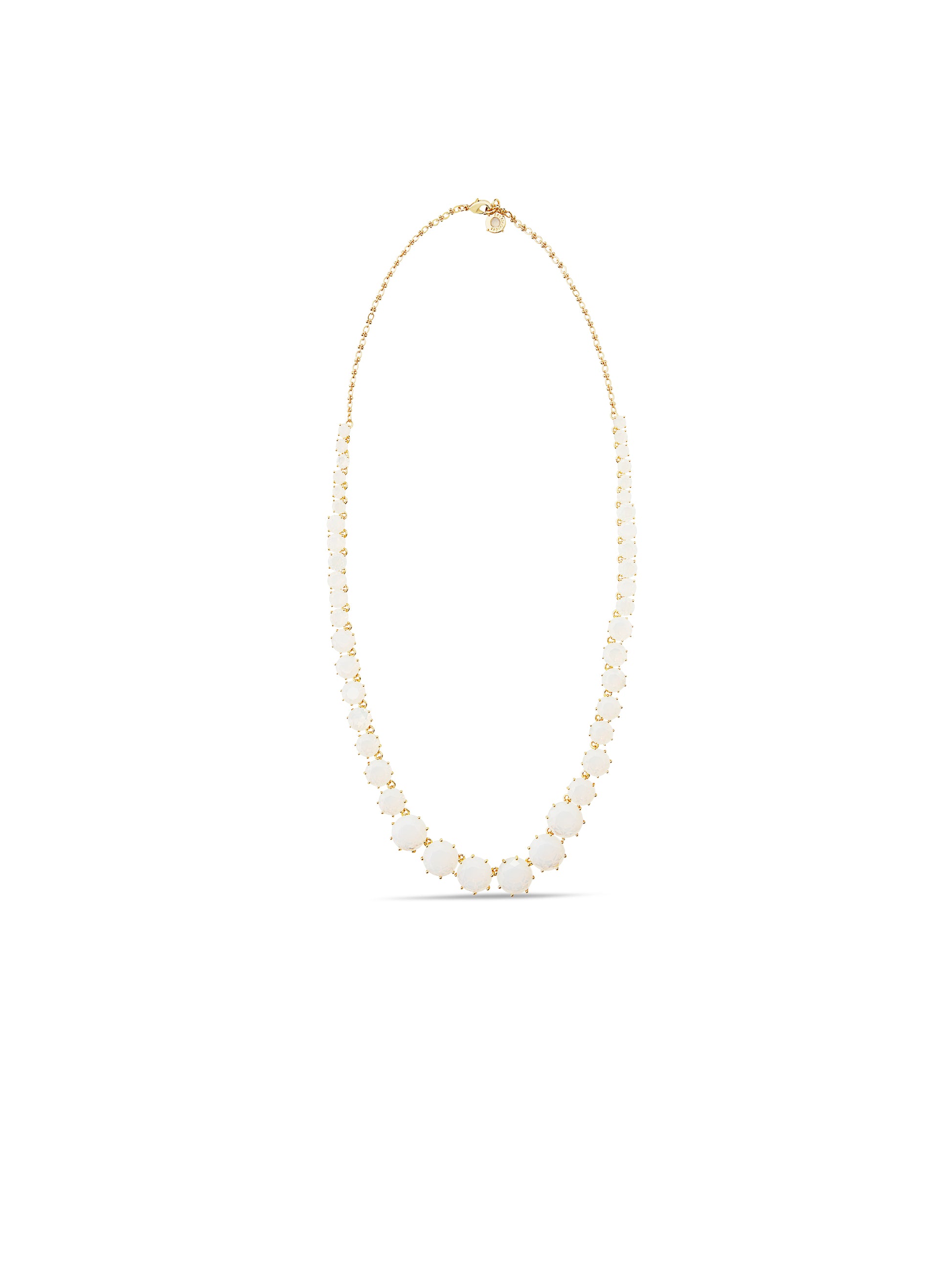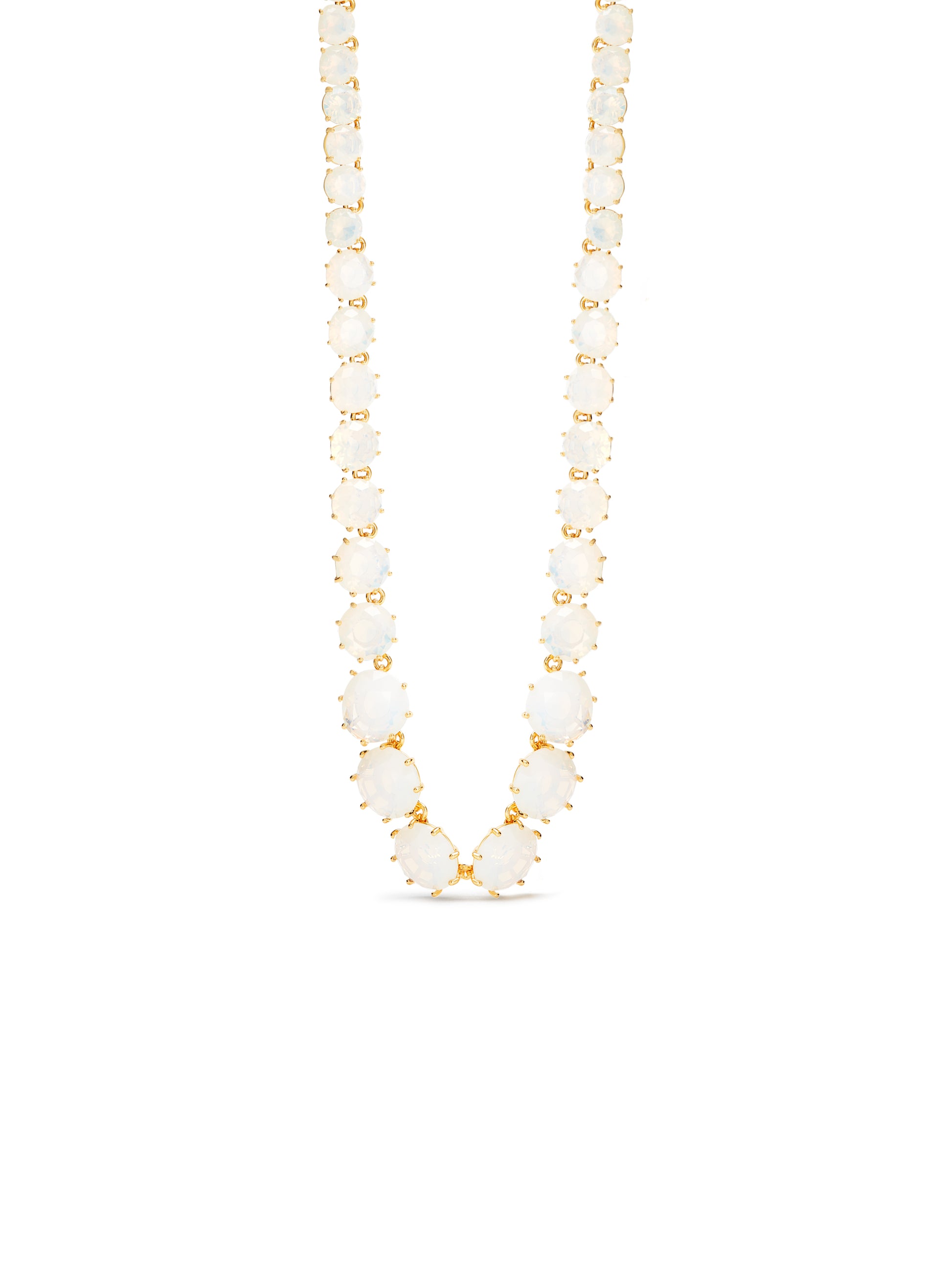 Opalescent White Diamantine Round Stone Long Necklace | auld3511