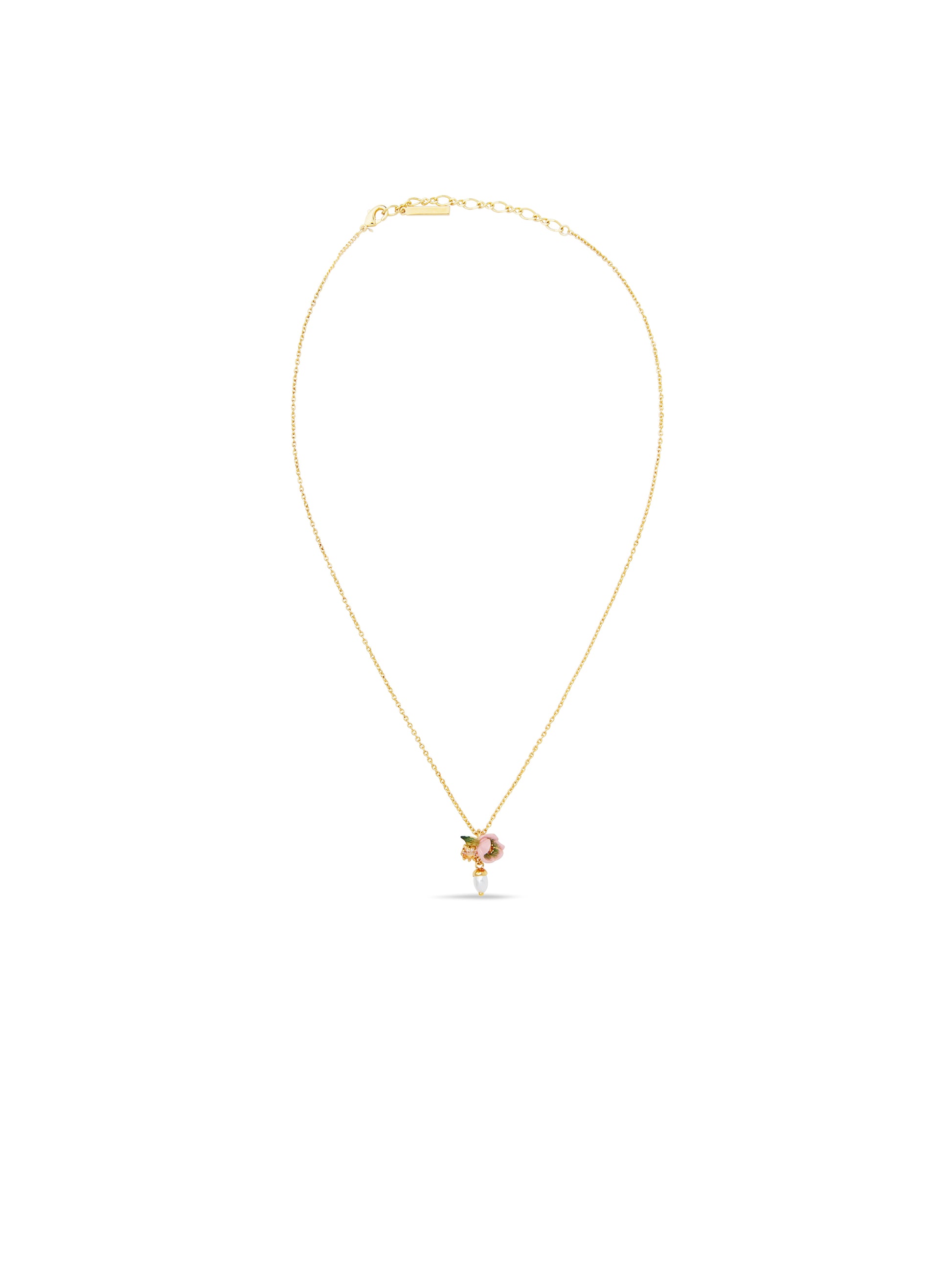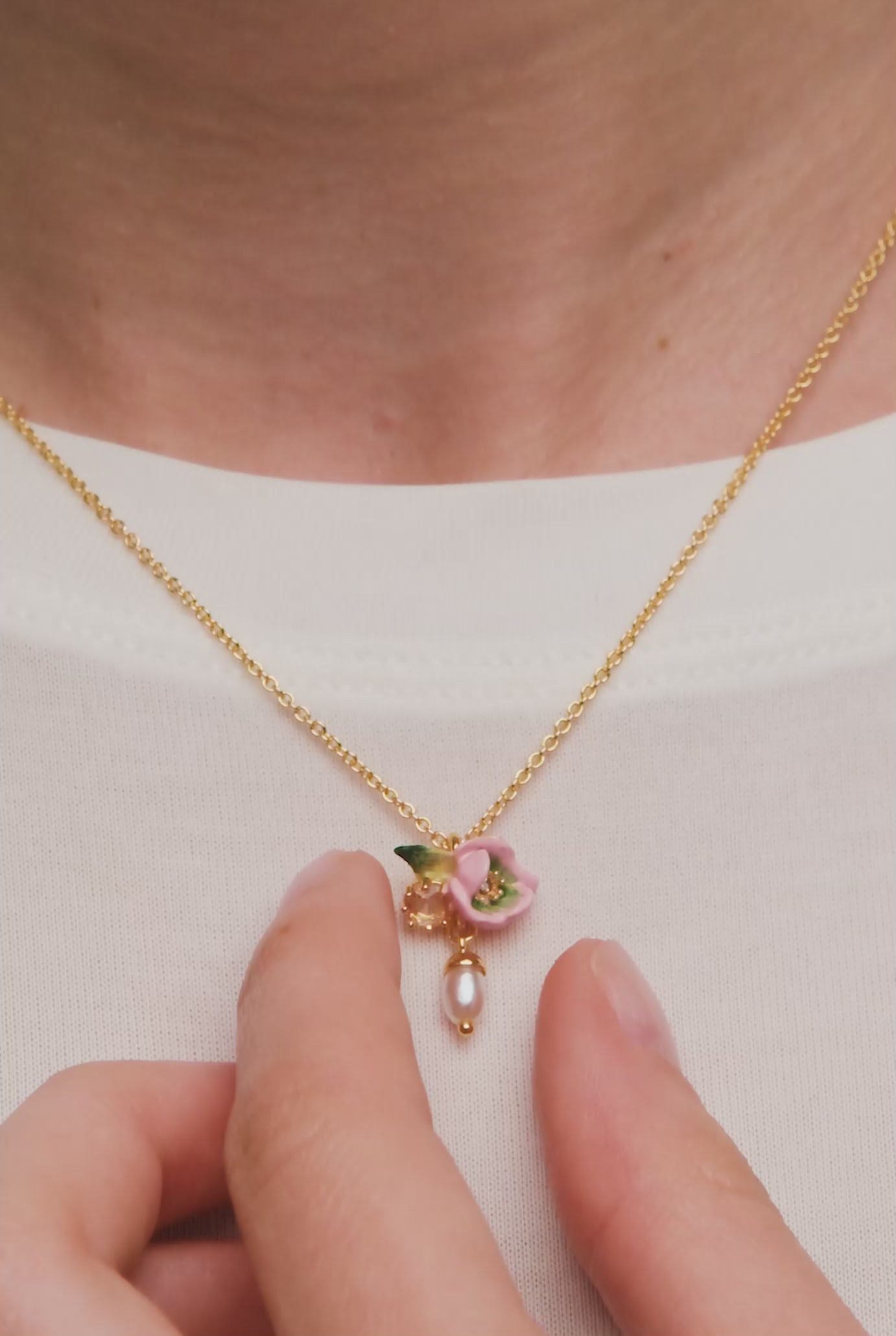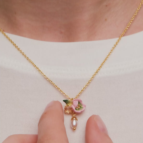 Pink Hellebore & Crystal Pearl Pendant Necklace