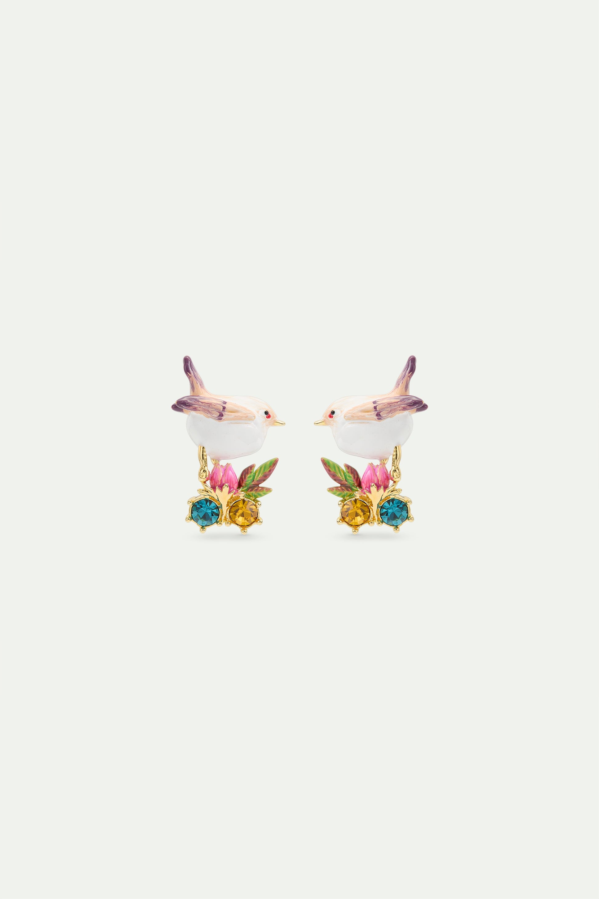 Inspired by the serene beauty of the "Walk in Barbizon" collection, these enchanting 'Snow Bunting' white bird sleeper earrings capture the delicate artistry of nature. Each exquisite piece is meticulously hand-painted with a charming rosebud and adorned with shimmering blue and yellow crystals, evoking the gentle allure of a stroll through the French countryside. This collection, a tribute to the famous artists' village, invites you to embrace a chic and elegant journey.