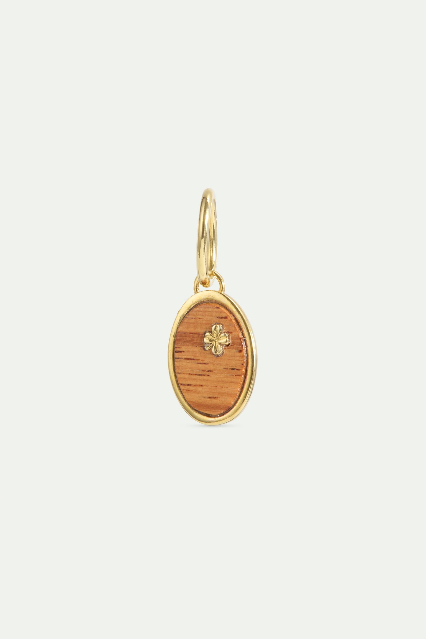 Description: ‘Touch wood’ medal pendant made of wood and gold-plated brass. Many of us, superstitious or not, tap wood to ward off bad luck. With this amulet, you won't need to look for wood or tap your head, but you'll always have a bit of sacred fire safely tucked away on your chest. Hang individually or stacked on one of our bases, sold separately. Create a unique piece of jewellery and wear your symbols as good luck charms, for a creation that reflects your image.