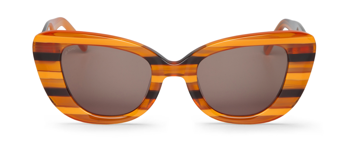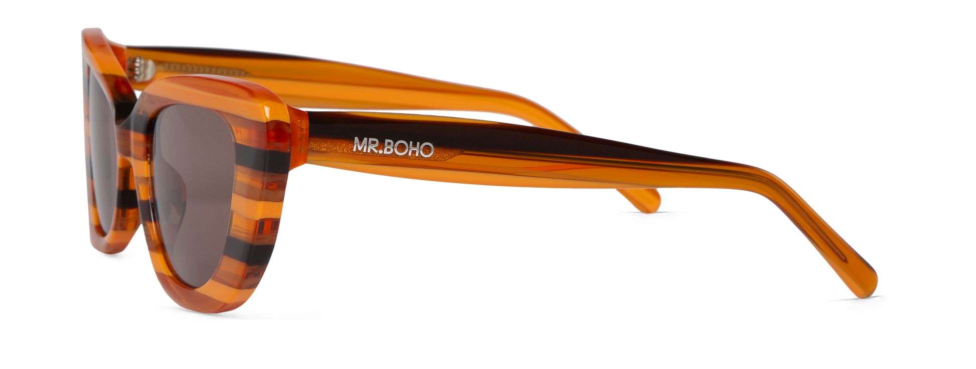 A new cat-eye frame with softened lines and horizontal character. It stands out for its original rounded bridge, which creates a flattering silhouette with a distinctive touch.
