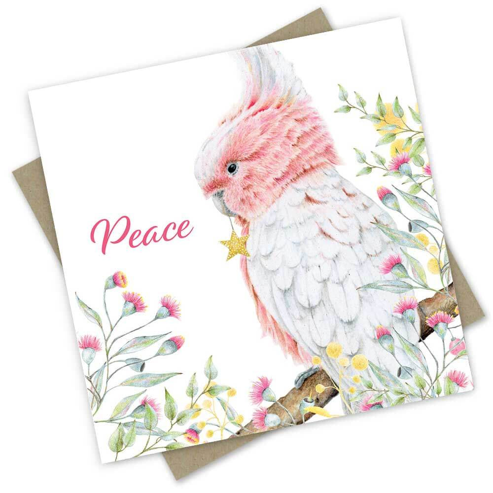 Christmas Card: Pink Cockatoo Peace & Joy