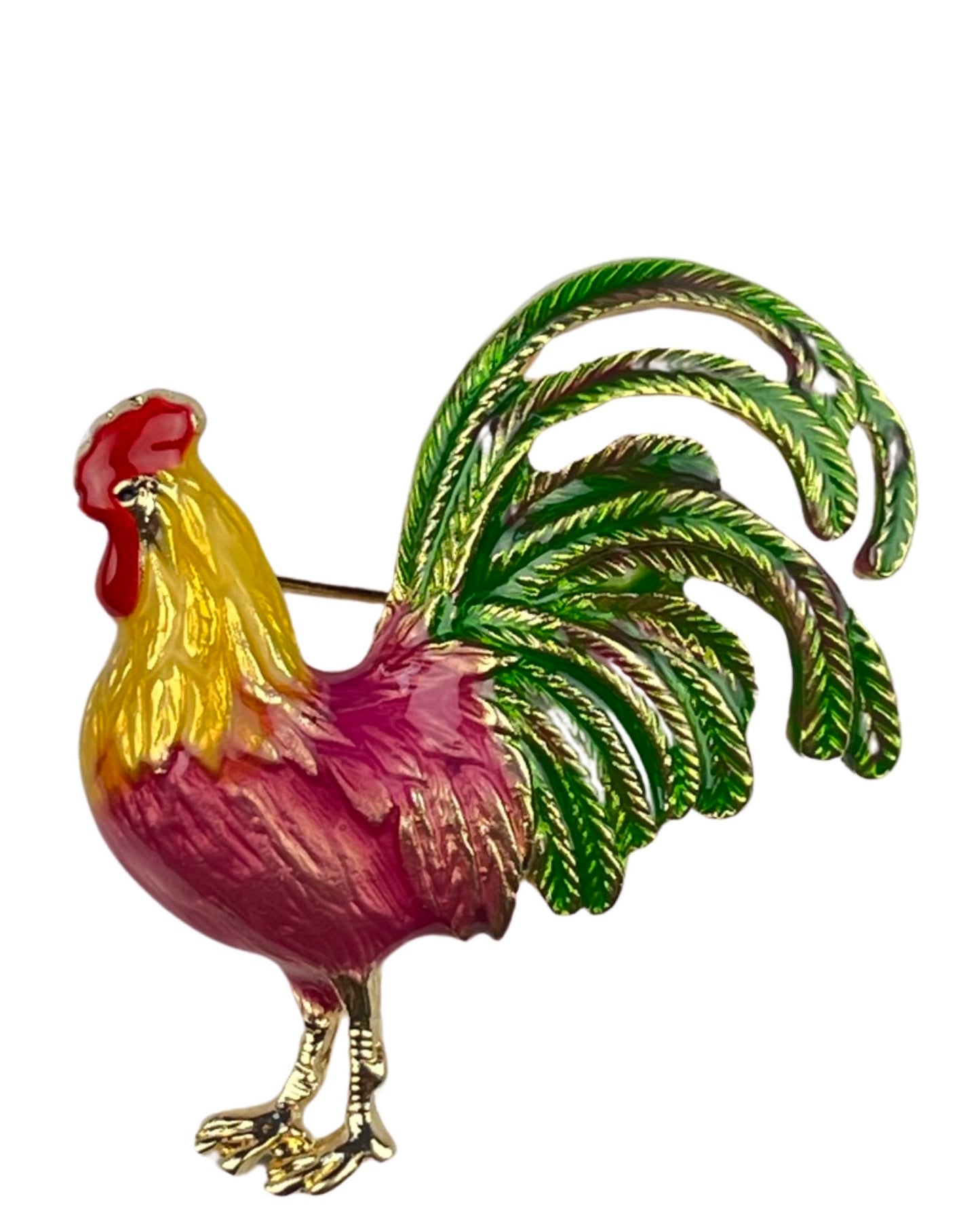 A stunning enamelled rooster pin - W45mm x H40mm.