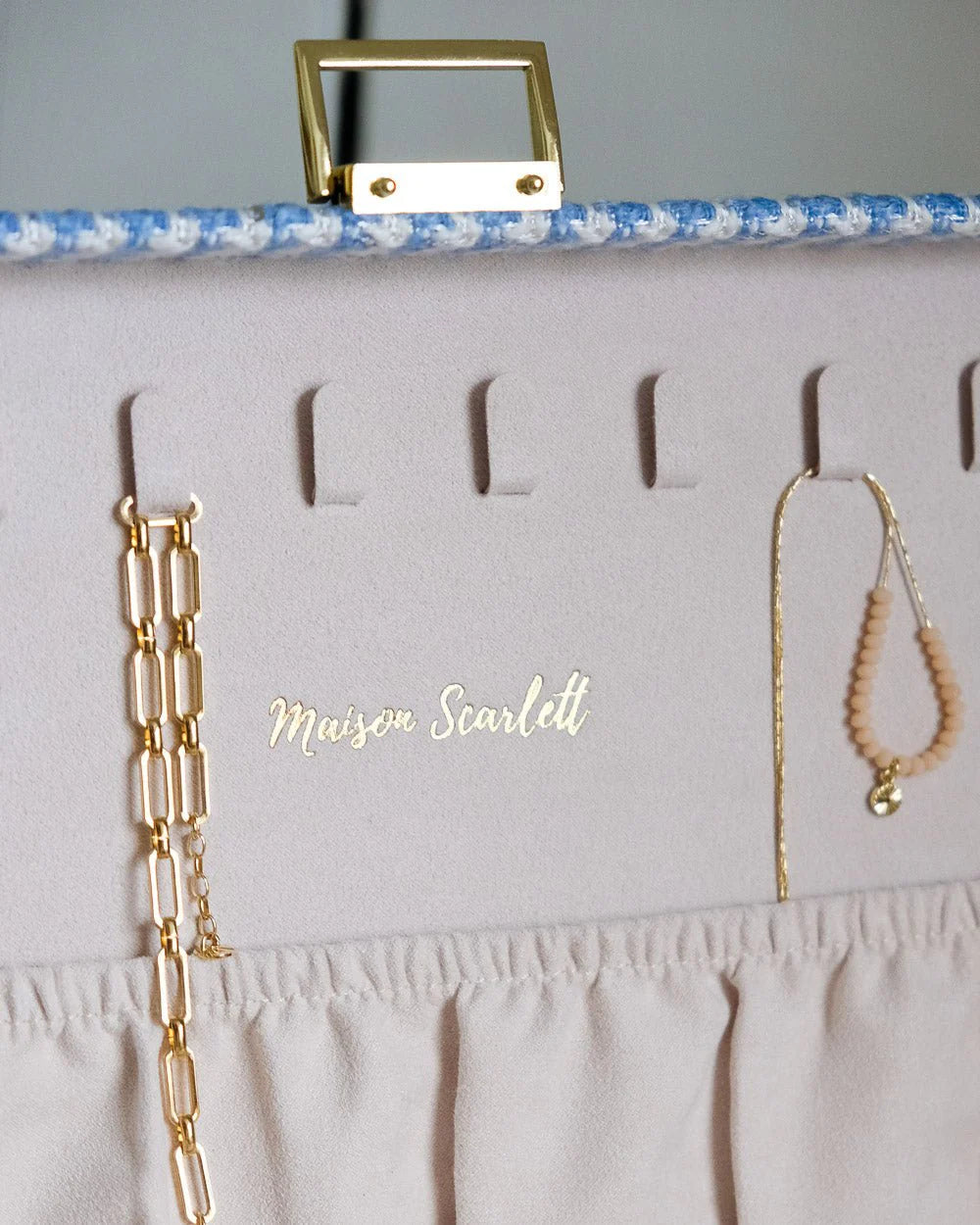 Our Denise jewelry box is the largest jewelry box in our collection. Its many slots adapted to each type of jewelry will allow you to store all your rings, necklaces, bracelets and earrings without cluttering your dresser.