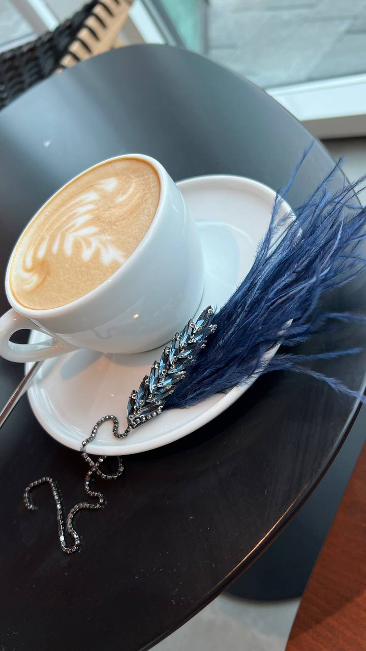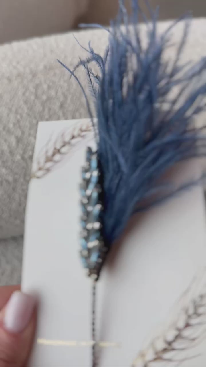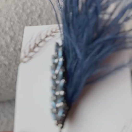 Discover the elegance and sustainability of our Handmade Feather Brooch in Navy. Made with real ostrich feathers, stones, and rhinestone chains, our jewellery is crafted by hand without the use of plastic or harmful equipment. Add a touch of glamour to your look.