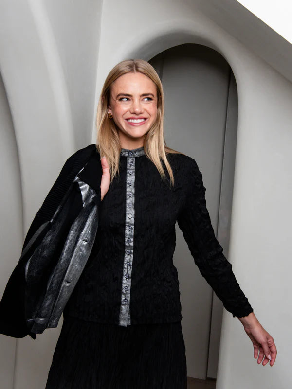 The Havana Shirt pairs understated refinement with signature craftsmanship. Featuring long sleeves and a slim-fit silhouette, it is detailed with delicate buttons and Alquema’s iconic smash pleating. Artfully crafted to transition seamlessly from day to night, this piece is a cornerstone for modern dressing.