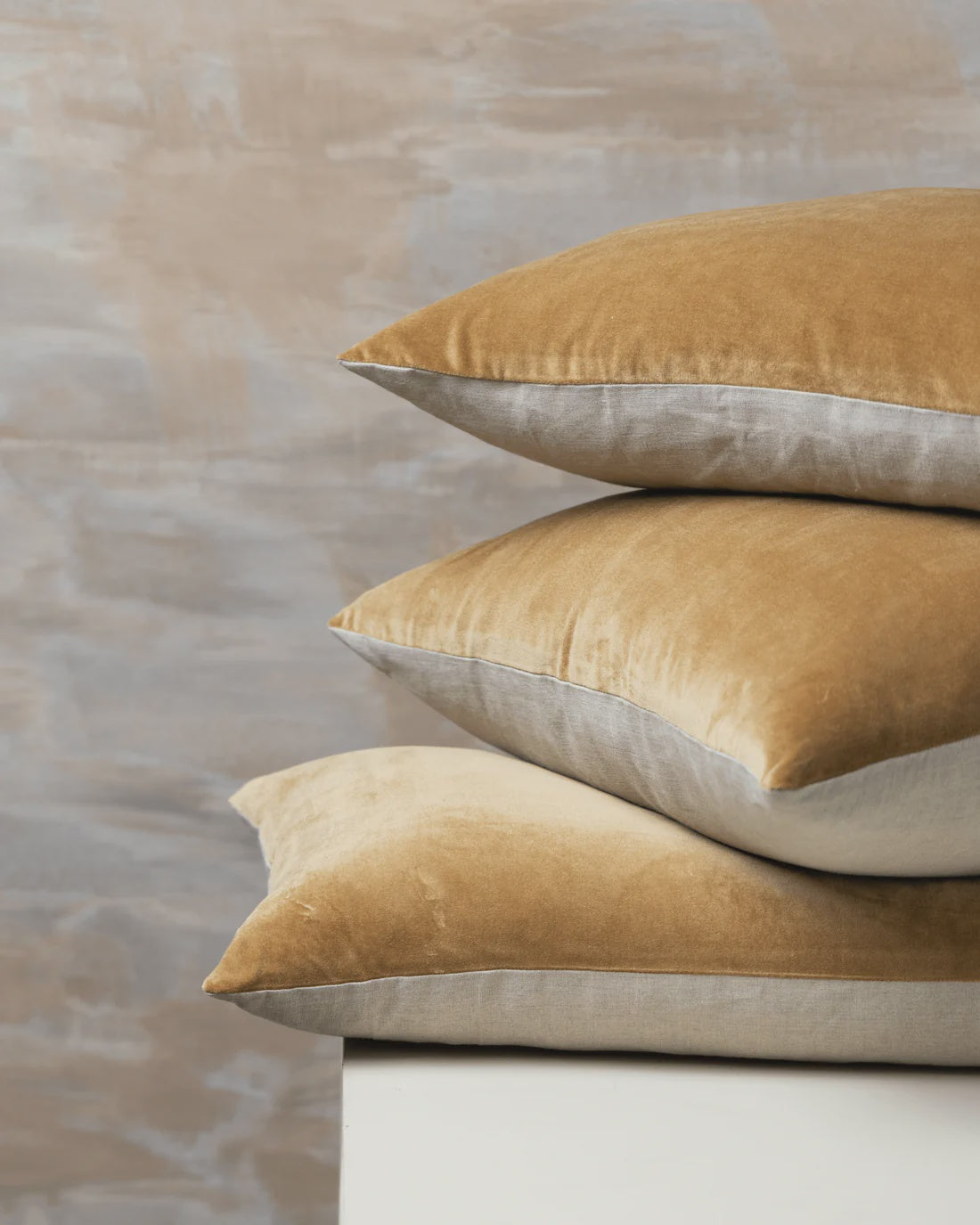 Our Nutmeg Linen/Velvet Cushions are super soft, with soft tones and reversible linen backing. With a feather down insert for maximum comfort.