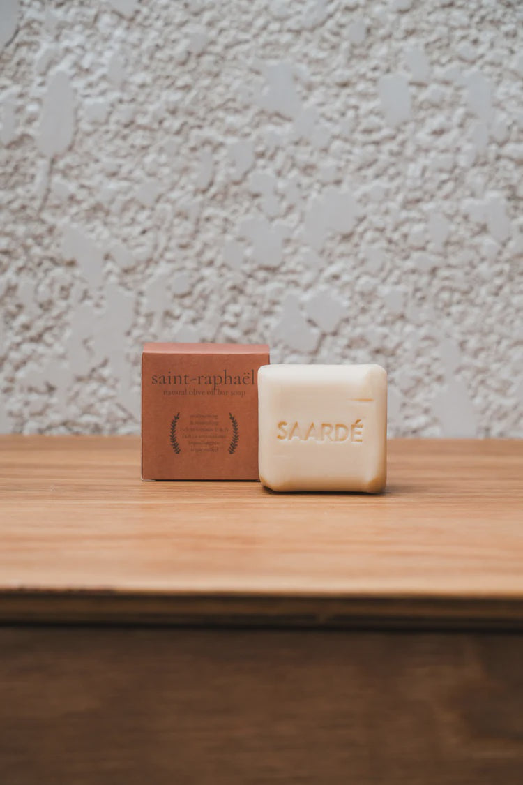 The Saint-Raphaël Olive Oil Bar Soap is a dense bar of soap that retains its form, will never crack and will not leave the usual soap residue on your shower shelf or bathroom vanity. Treat your skin kindly everyday.