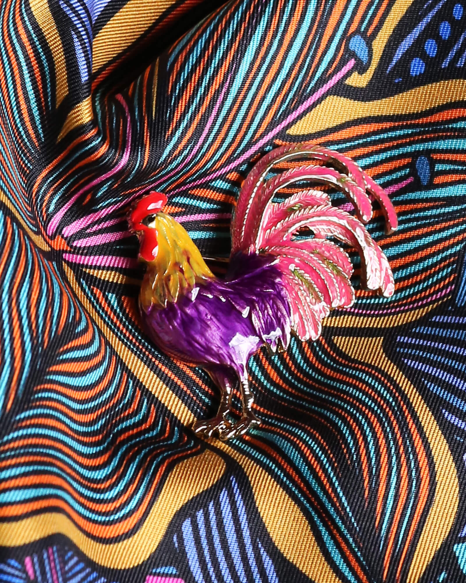A stunning enamelled rooster pin - W45mm x H40mm.