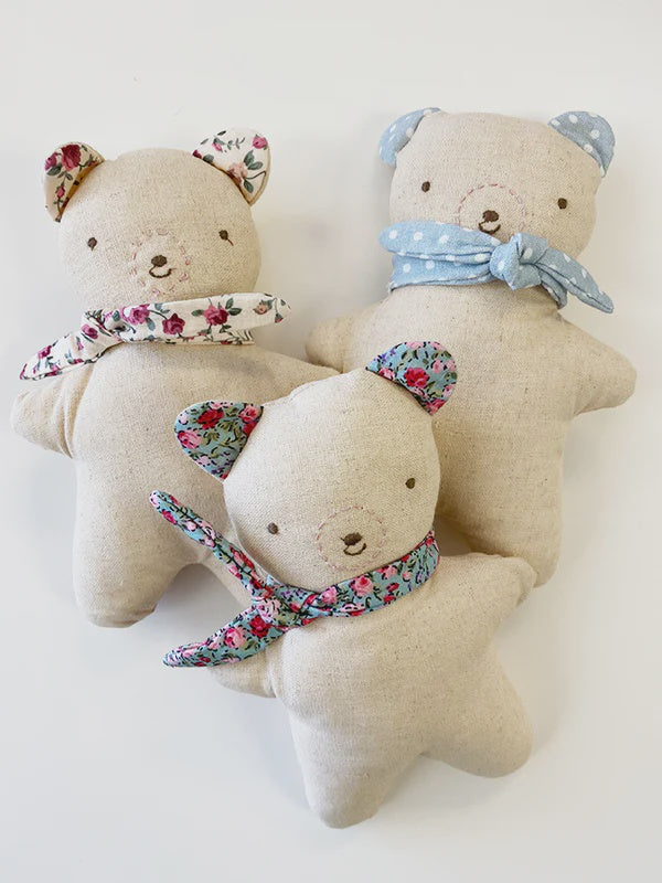 Scout Teddie Bear is a very cute handmade teddie bear. Her body is made from natural linen and she has a sweet embroidered face with the lovely detail of vintage floral necktie and matching ears.