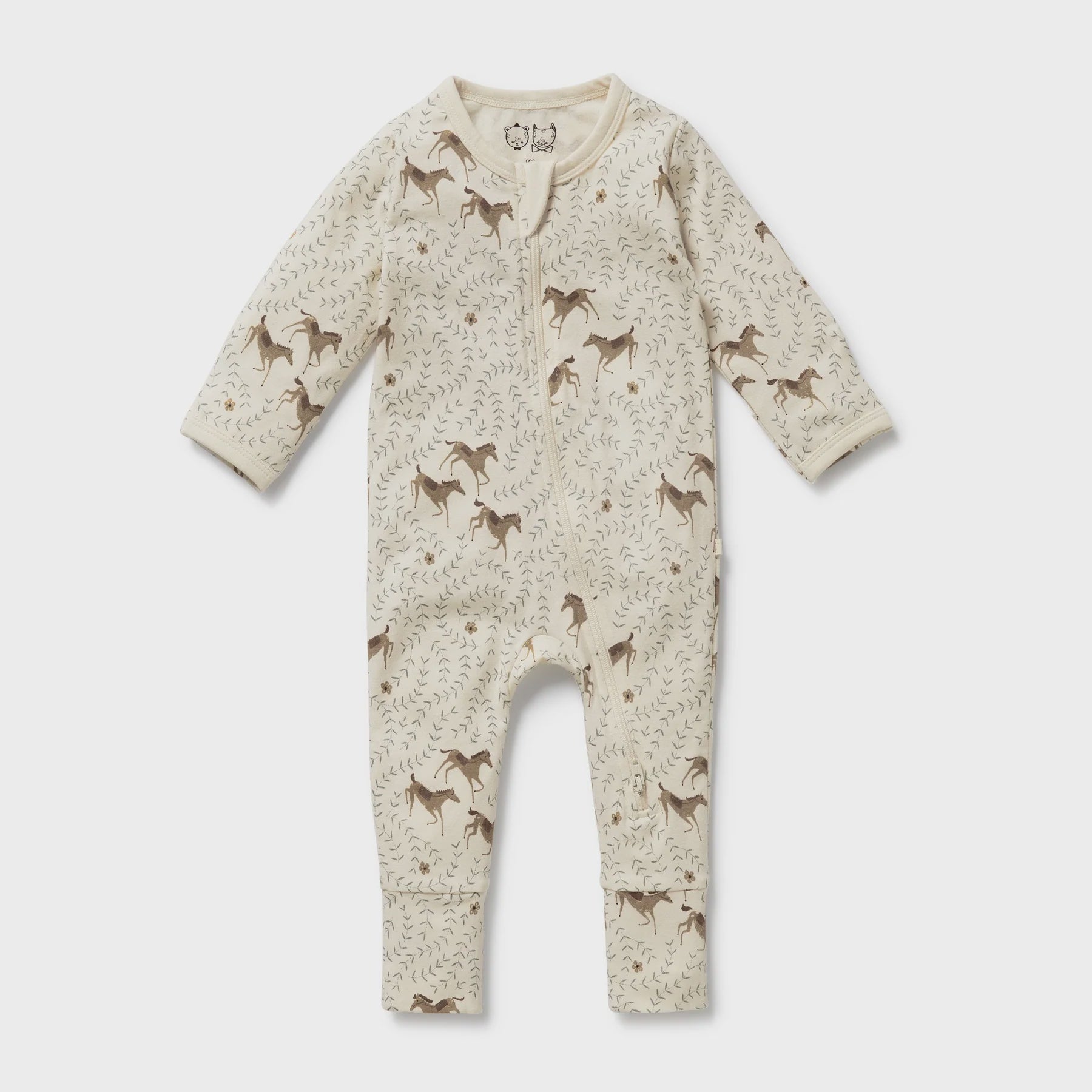 Keep your newborn comfy and cosy with this practical yet adorable footed zipsuit from Wilson and Frenchy. The design features fold over mittens (Sizes newborn to 000) to protect baby's face from little fingernails, and the option of a footed foot for growing bodies. Crafted from organic cotton, it's gentle on baby's sensitive skin, and extra handy when having to make nappy changes. Features a gorgeous hand-illustrated print.