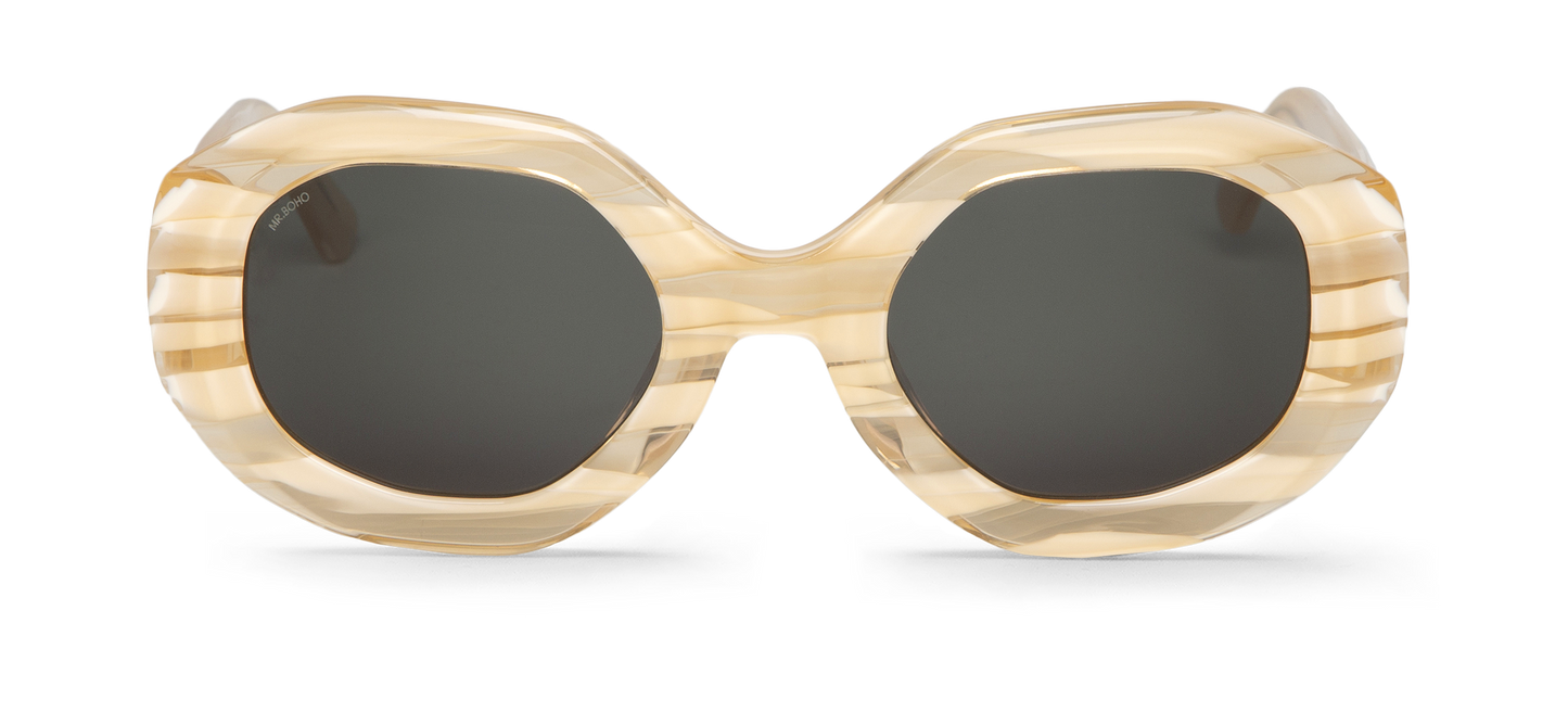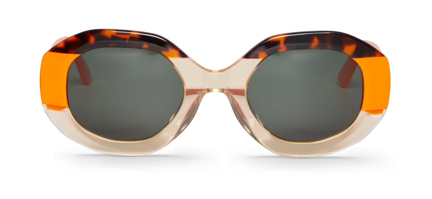 Round and forceful frame of maximalist inspiration. It presents geometric and marked edges that give it a great personality.