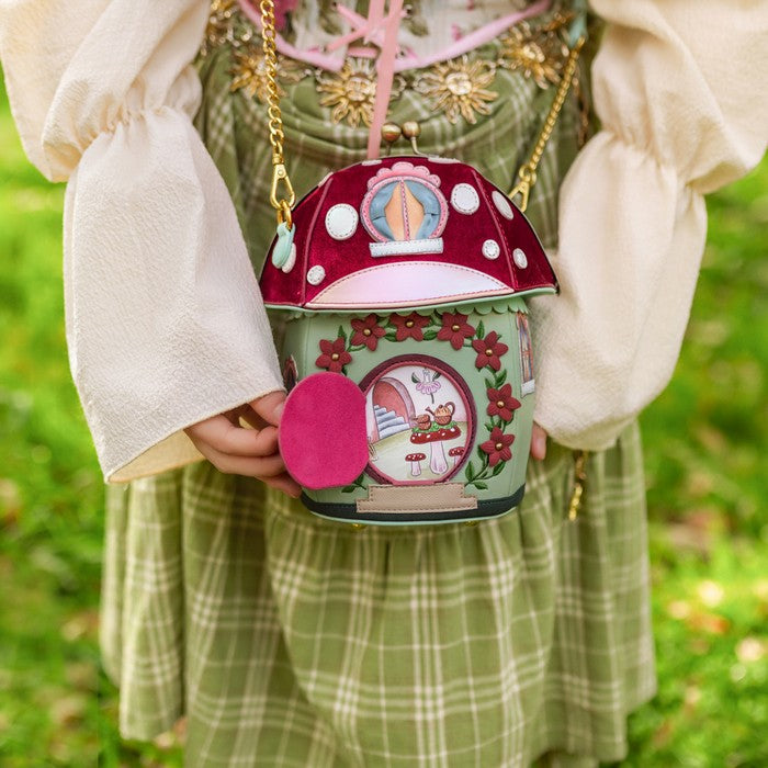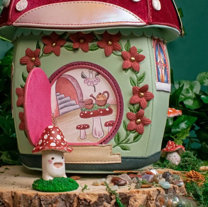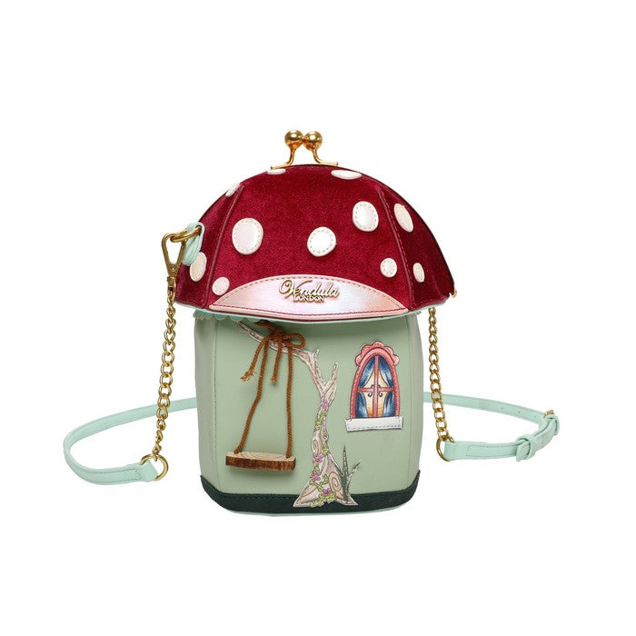 Did you miss out on our previous toadstool-shaped bag? Today is your lucky day! The Fairy Village Toadstool House Bag can be used every day or on a day/night. It may be smaller than the average bag, but it can still fit in all of your essentials, and everything will be kept safe thanks to the smart clip closing. It can be carried with or without the strap, depending on the occasion, and it comes with base stud to ensure it stays clean wherever you leave it. This toadstool house looks gorgeous with an outstanding artwork, consisting of colourful printed and embossed details, as well as a blend of textures that will amaze you every time you use this bag. Does anyone want to try the swing out?