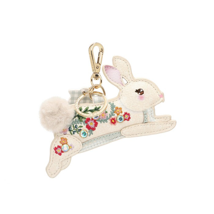 The Woodland Rabbits Key Charm is a little ray of sunshine! This small accessory in the shape of a rabbit is made of vegan leather, and it is adorned with printed and embossed details matching your Woodland Rabbits bag, purse and phone case. It comes with a clasp and a ring, and therefore can be used as either a bag charm or as a keyring. You will enjoy alternating the uses and even inventing your own style and combine it with other bags or keyrings – do you remember the Highland Fling range and its cheerful hare? The combinations are endless so, have fun!